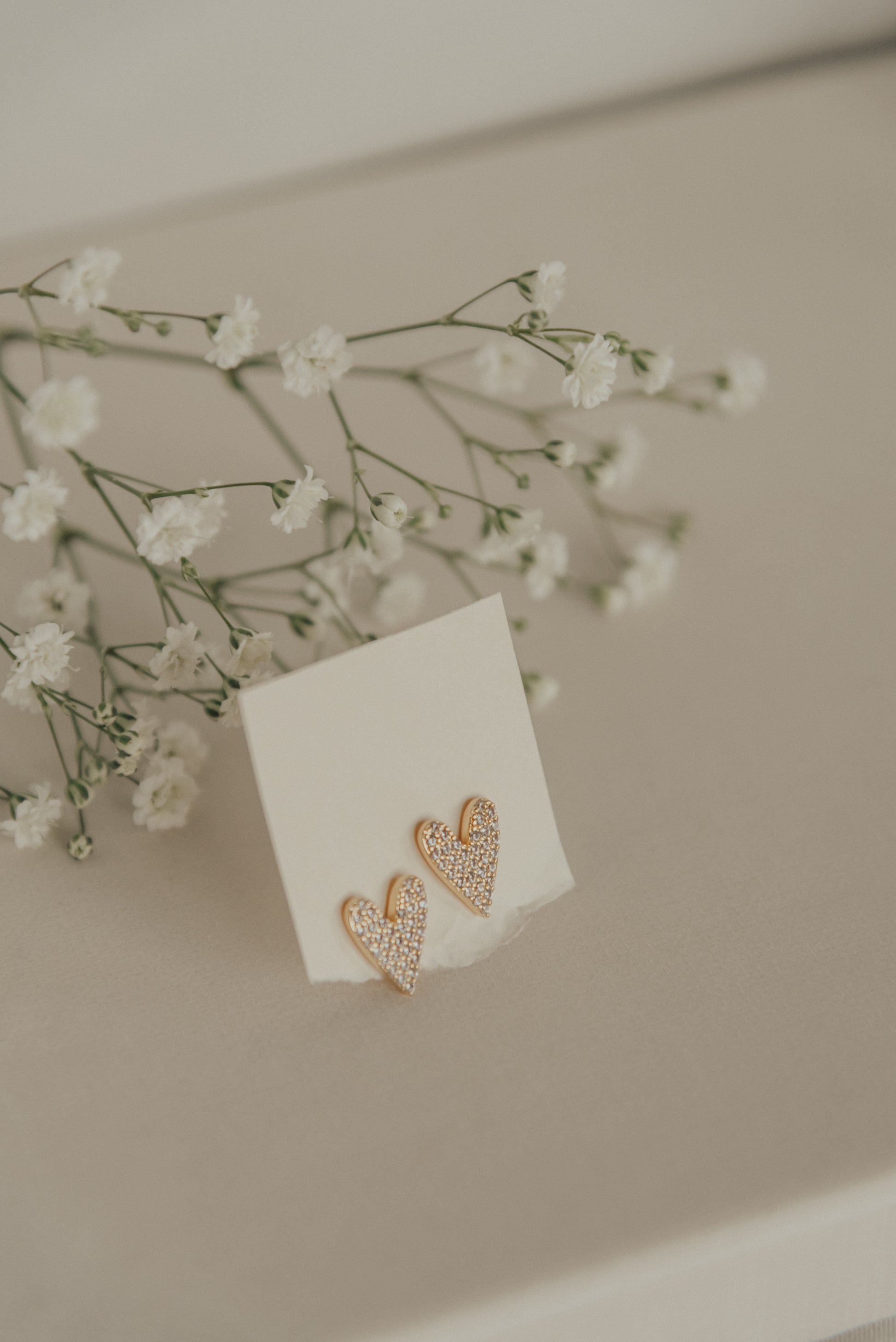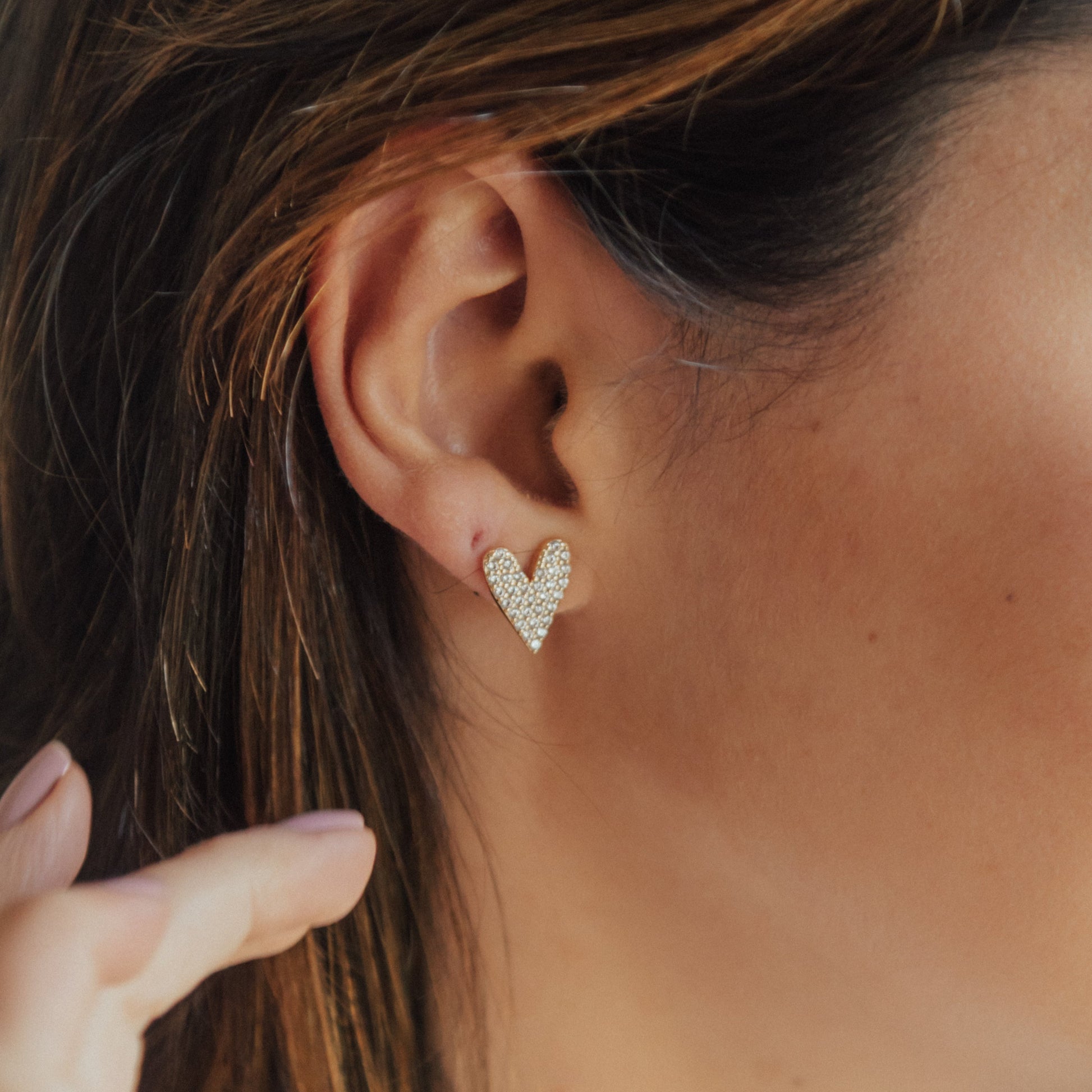 Brinco de coração cravejado de zircônias. Esse é pra quem quer um brinco para todas as horas, que combina com tudo, mas tem o charme de ter o formato de coração.