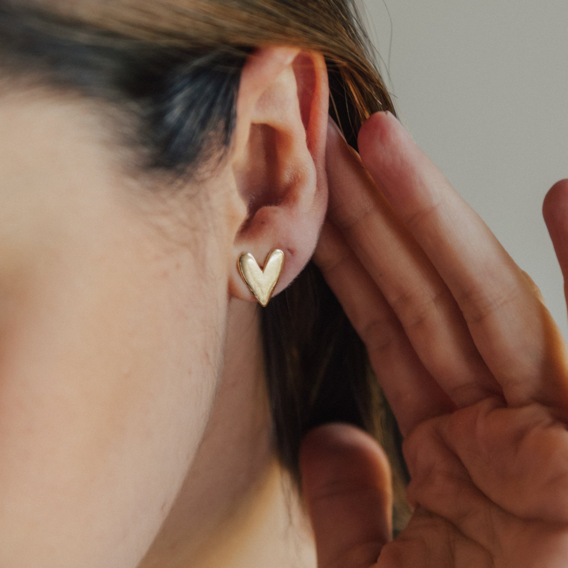 Brinco de coração chapado liso. Esse é pra quem quer um brinco para todas as horas, que combina com tudo, mas tem o charme de ter o formato de coração.