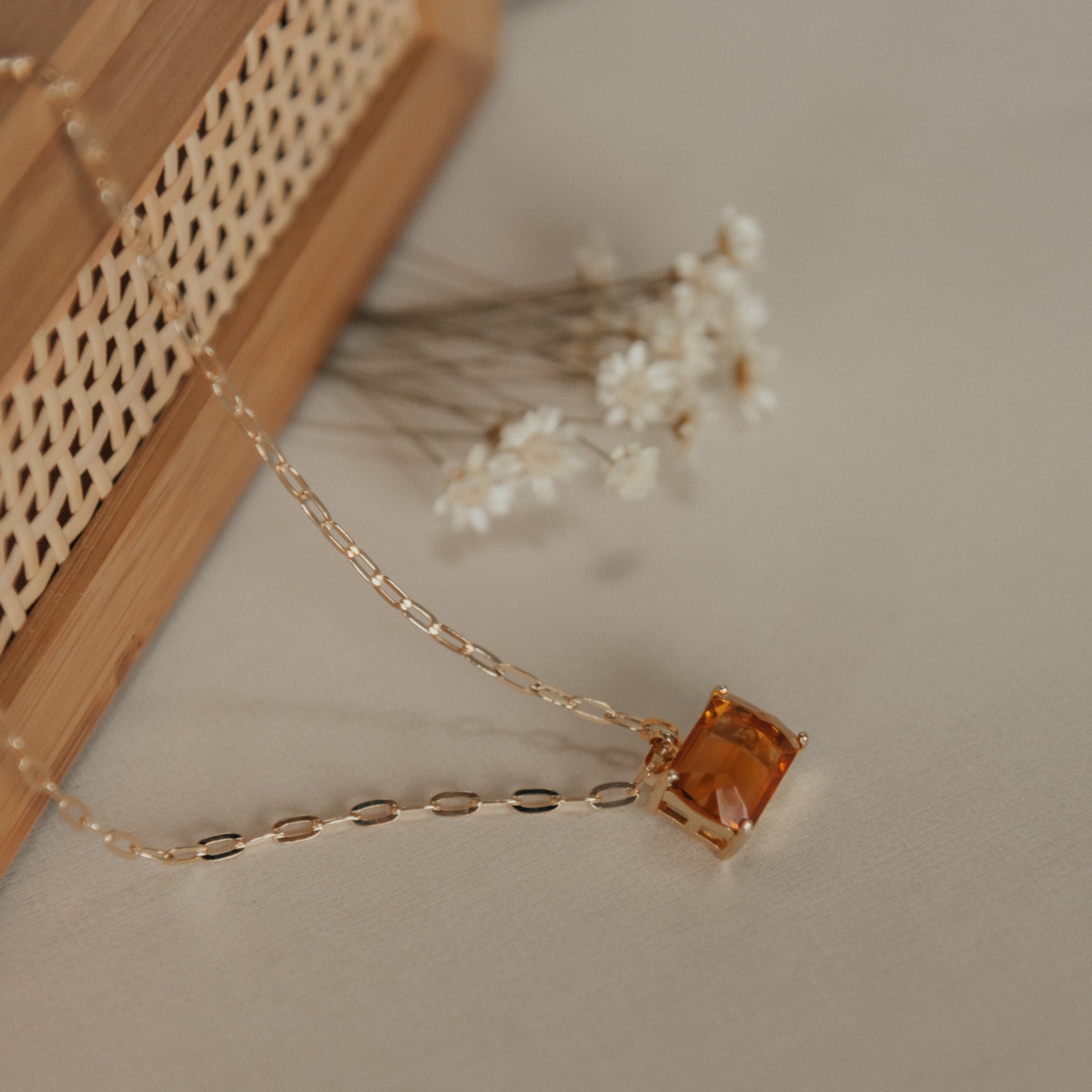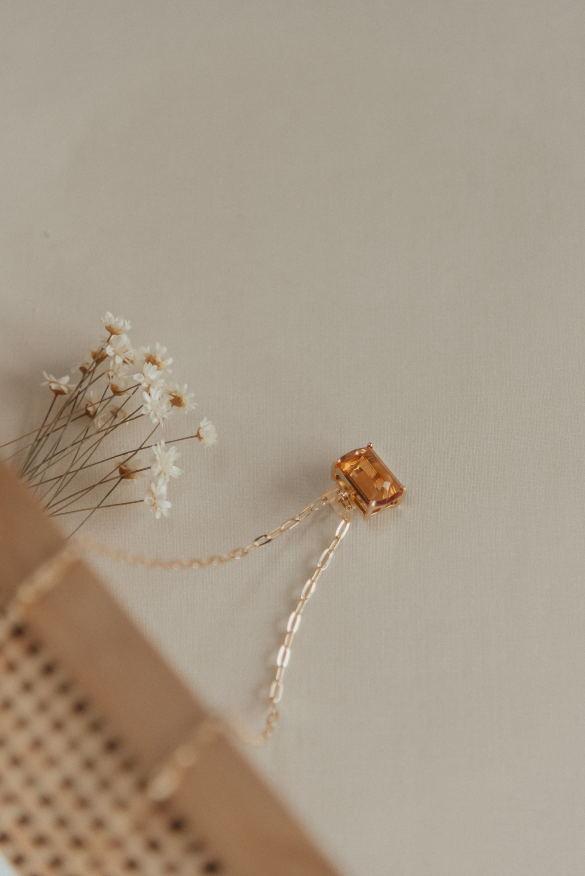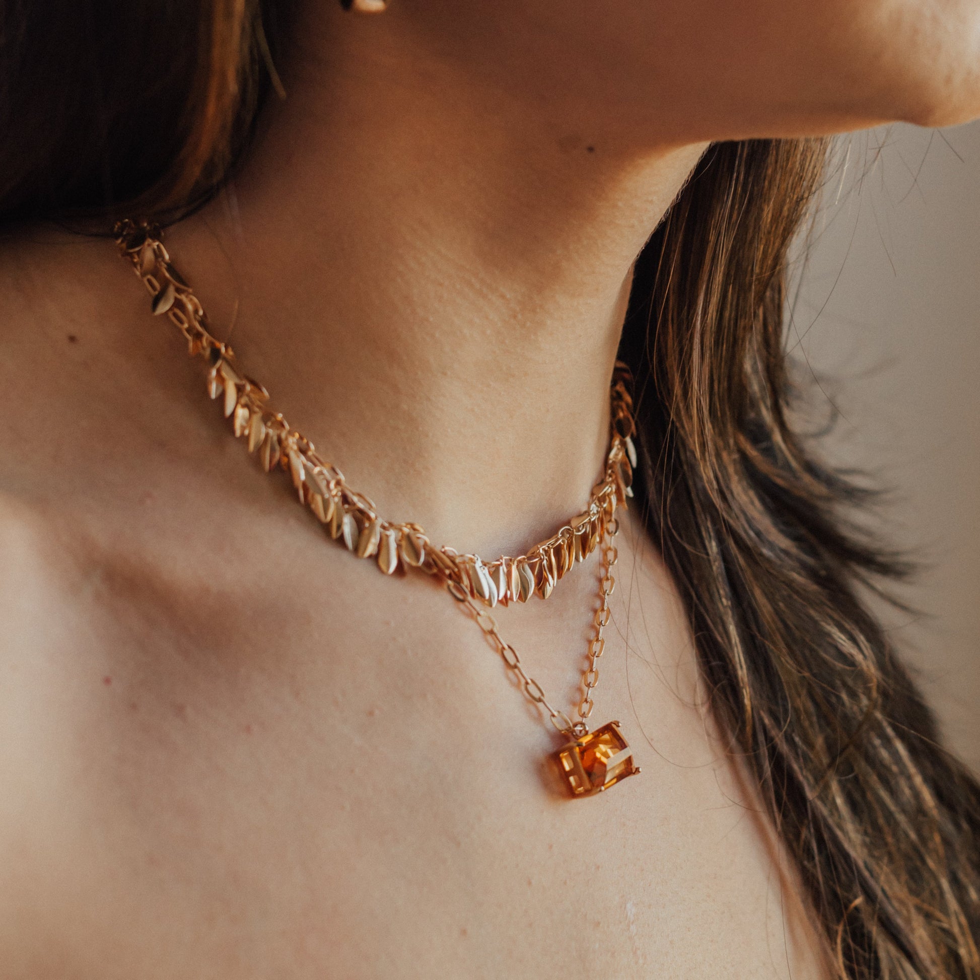 Corrente dourada com banho espesso de ouro 18k com pingente de pedra natural Citrino, conhecida por ser a pedra da prosperidade!