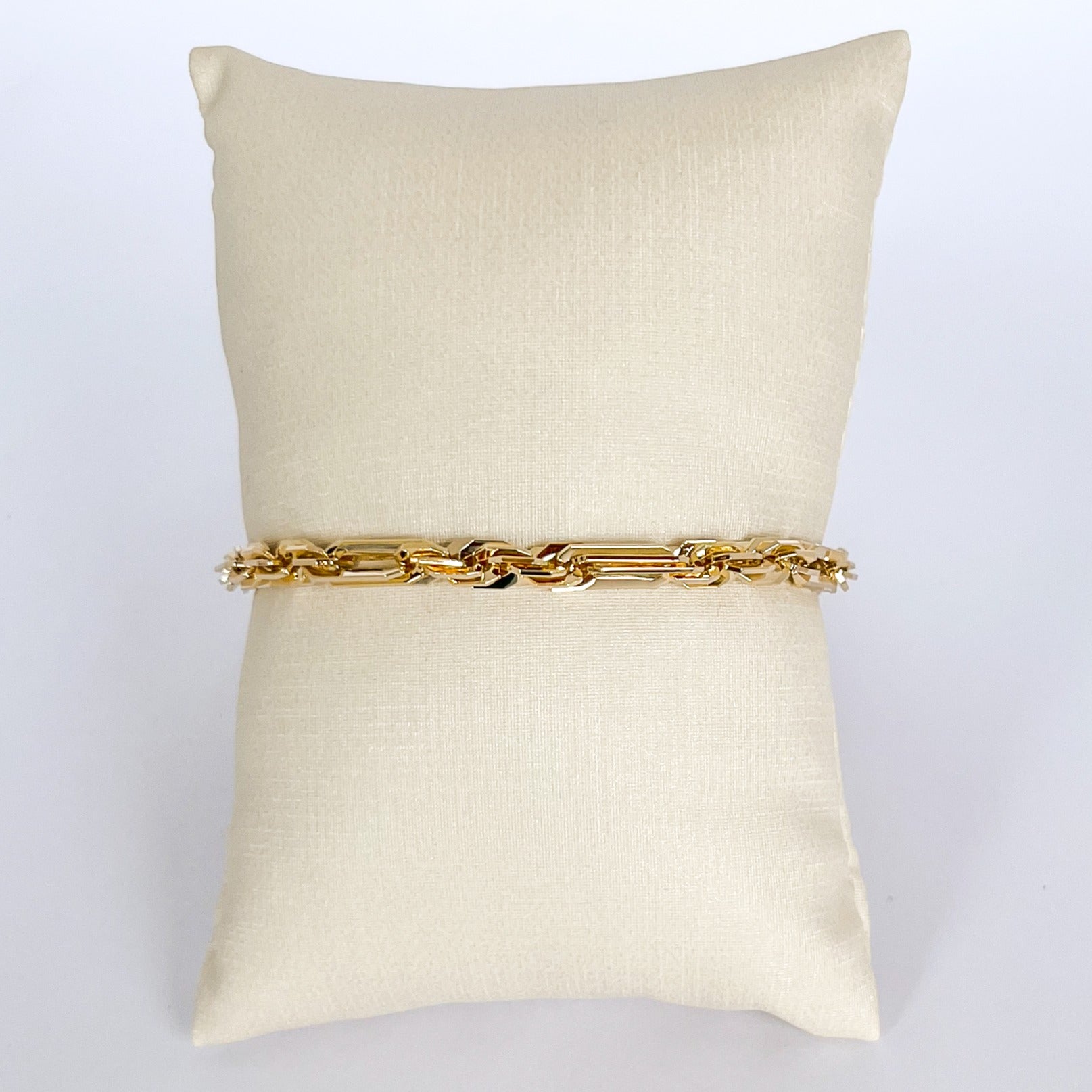 | A pulseira corrente tramas, banhada em ouro 18k é aquela pulseira que todo mundo precisa ter! Perfeita para todos os momentos, fica lindissima sozinha ou em um mix com outras pulseiras e relógio! |