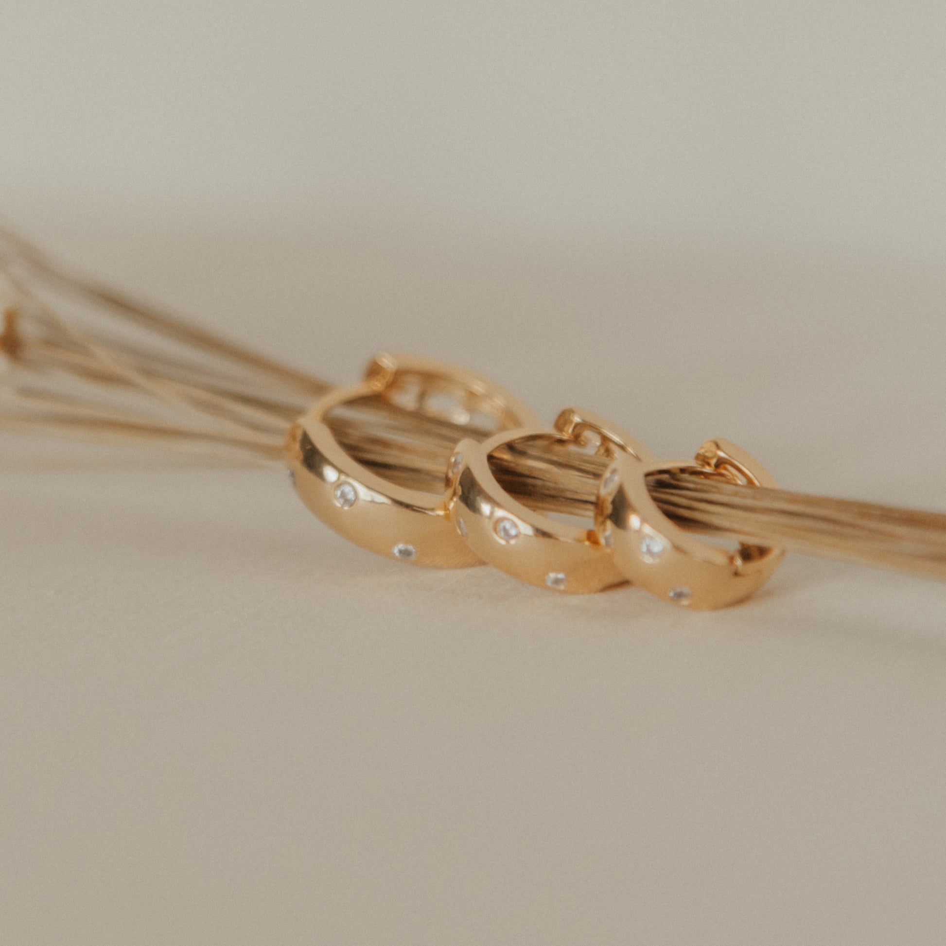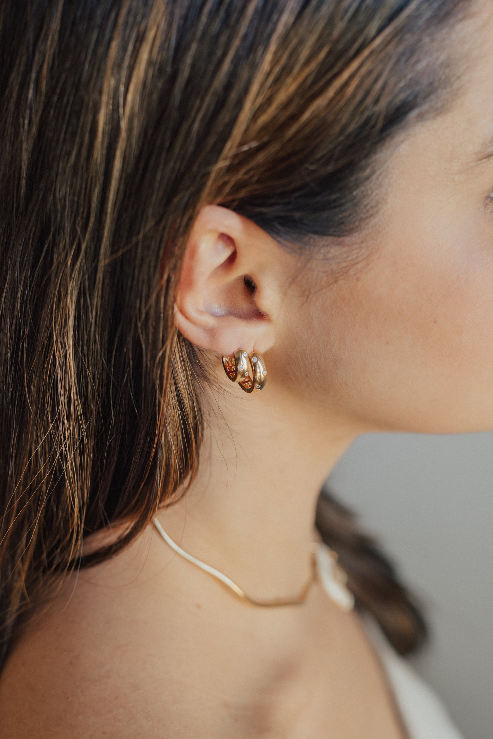 Um trio de argolas delicado e simplesmente perfeito! Básico mas nem tão básico assim, sabe? São 3 argolas redondas, com zircônias cravejadas.